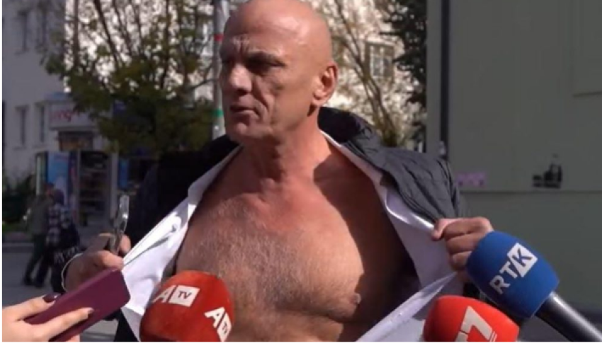 Ai madje para gazetarëve, e ka zhveshur këmishën duke iu bërë thirrje atyre që të takohen.