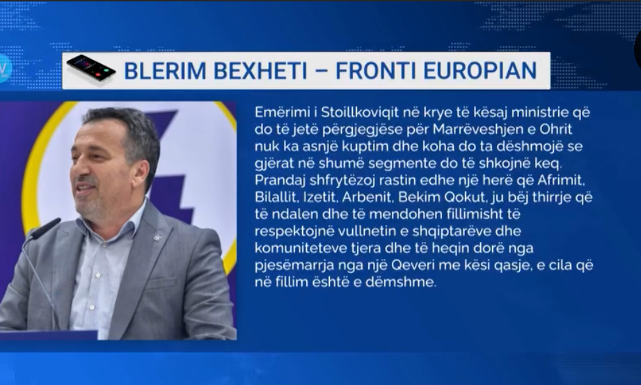 Bexheti në një intervistë telefonike për TV21 tha se emërimi i Stoilkoviqit në krye të ministrisë e cila kujdeset për marëveshtjen e Ohrit nuk ka asnjë kuptim dhe se koha do ta dëshmon se gjërat në shumë segmente do të shkojnë mbrapsht.