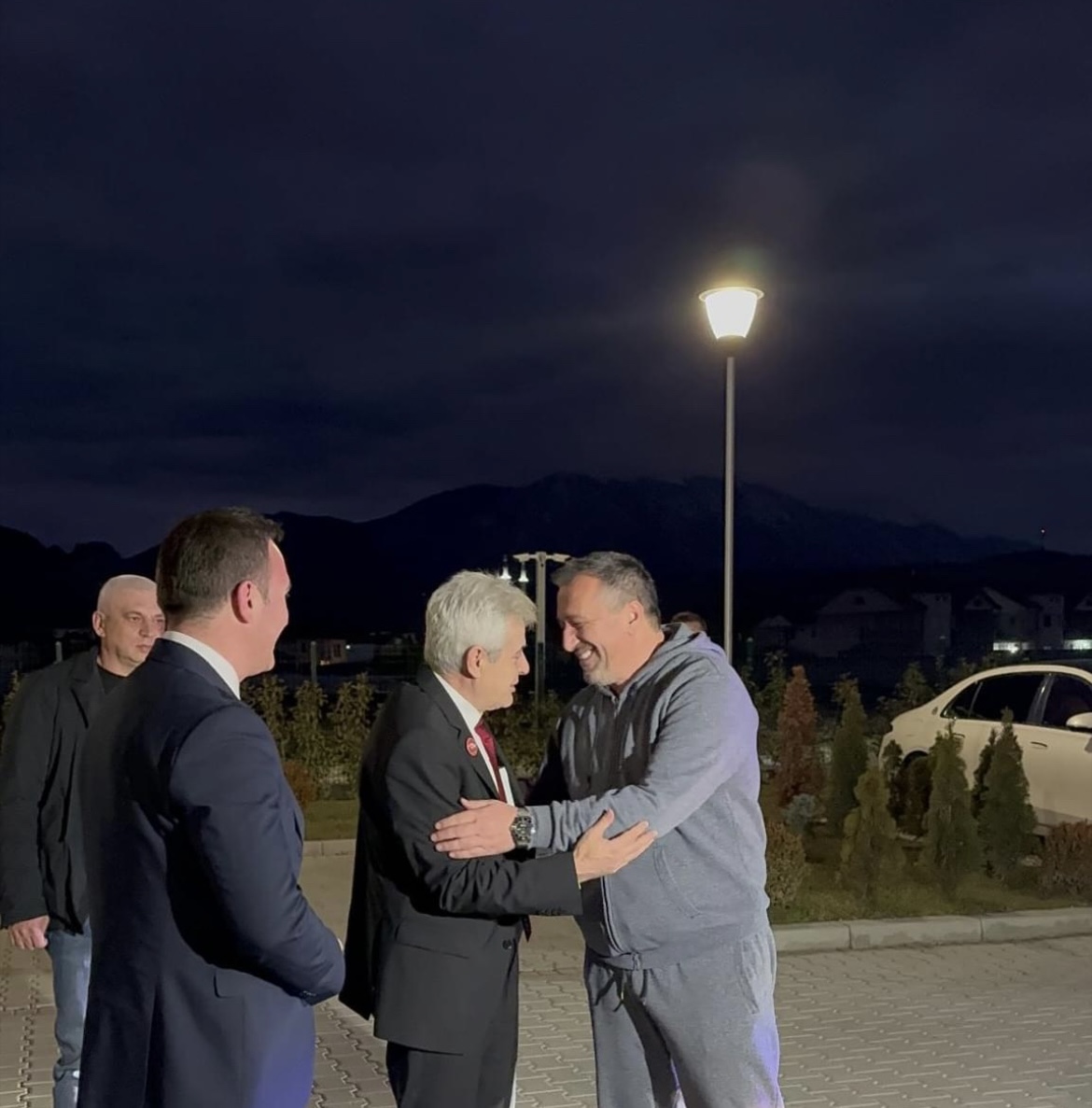Kryetari i Bashkimit Demokratik për Integrim Ali Ahmeti para intervistës në televizionin Klan Maqedoni është pritur nga i pari i komunës së Sarajit Blerim Bexheti.