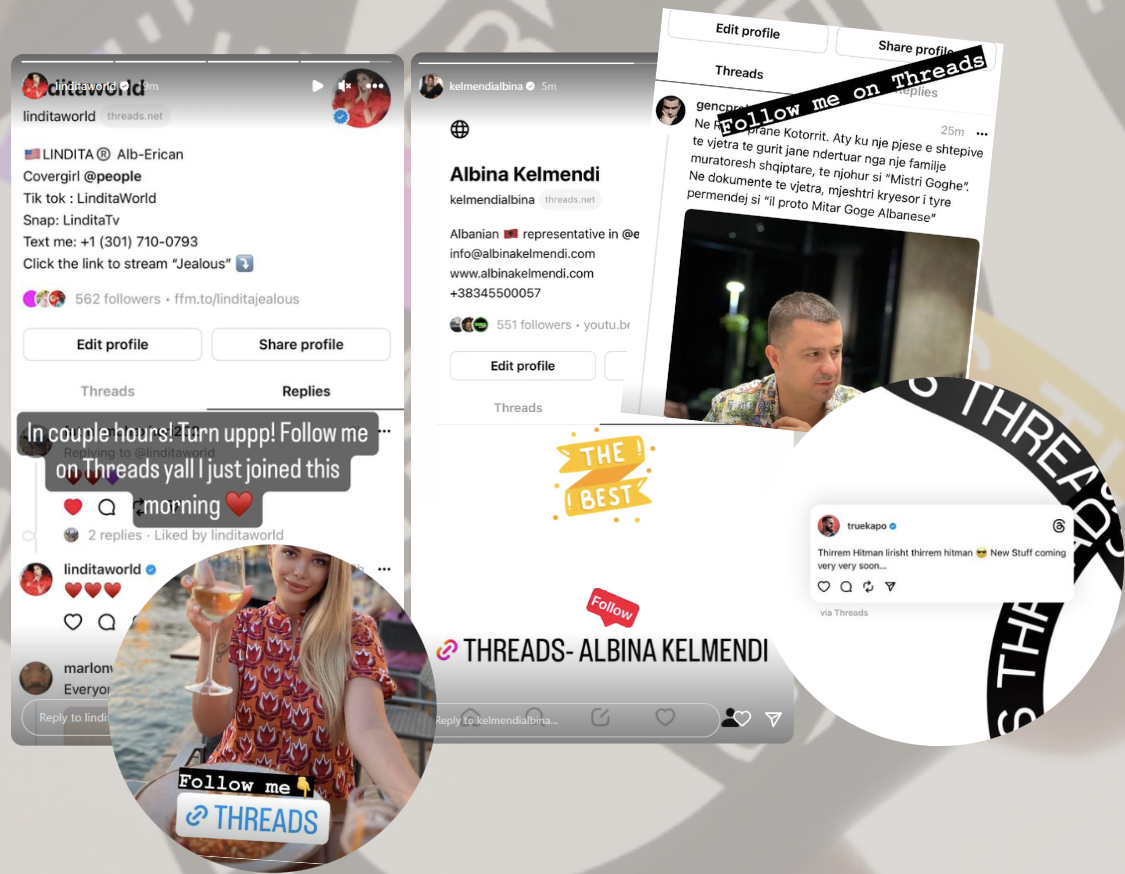 Pas këtyre, në Threads treguan se kanë hapur llogari edhe: Genc Prelvukaj, Eni Koçi, Capital T, Albina Kelmendi e Linda Halimi.