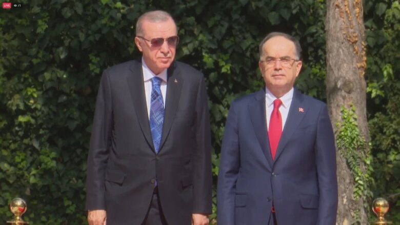 Në orën 11:30, eskorta e Erdogan ka mbërritur në Presidencë, ku lideri turk është pritur nga Presidenti Bajram Begaj me një ceremoni zyrtare shtetërore.