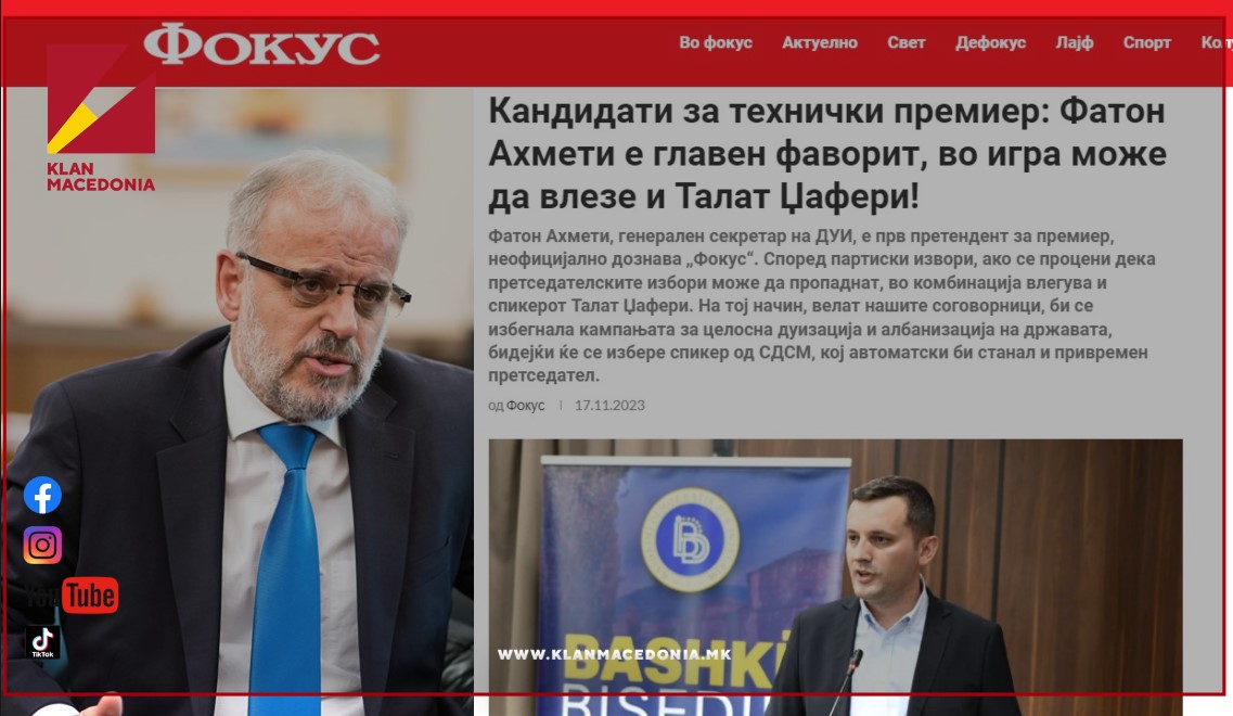 Në këtë situatë, sic percjell KlanM shkrimin e “Fokus”, BDI-ja do t`i mbajë tre pozicionet udhëheqëse të shtetit. Për këtë shkak bëhen analiza nëse është më mirë që Talat Xhaferi të bëhet Kryeministër Teknik dhe të zgjidhet Kryeparlamentari i ri nga LSDM-ja që do ta merr funksionin edhe të Presidentit të vendit.