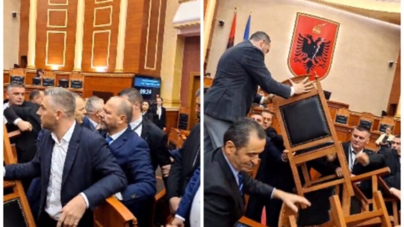 Deputetët janë përplasur me efektivët e gardës të cilët kanë tentuar të ndalojnë bllokimin e foltores së Kuvendit me grumbuj karrigesh.