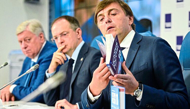 “Kapitujt për vitet 70-të, 80-të, 90-të dhe vitet e fillimit të shekullit janë ripunuar tërësisht dhe parimisht janë rishkruar, atyre i është shtuar një segmet i ri nga 2014 deri më sot, përfshirë edhe operacionin ushtarak në Ukrainë”, shprehet Vladimir Medinskij, këshilltar i presidentit rus, gjatë një konference shtypi tek agjencia e lajmeve, “Interfax” mbi prezantimin e librit të ri të historisë. Në Rusi lufta kundër Ukrainës paraqitet si “operacion ushtarak special”. Në konferencën e shtypit ish-ministri i Kulturës qëndron krahas rektorit për Institutin Shtetëror të Moskës për Marrëdhënie Ndërkombëtare, Anatolij Torkunov dhe drejtorit shkencor në Institutin e Historisë Botërore të Akademisë së Shkencave të Rusisë, Aleksandr Tshubarjan, një nga autorët e librit.