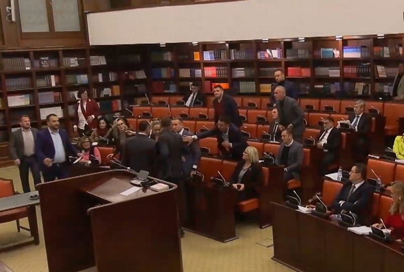 Kamera nga seanca më pas është fokusuar në grupin e deputetëve ku ndodheshin Bytyqi dhe Bojan Stojanovski, si dhe të tjerë që mesa duket kanë parandaluar një incident më të rëndë.