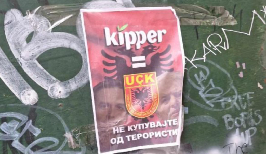 Në disa lokacione në Kisella Vodë të Shkupit sot janë shfaqur postera propagandistike kundër një biznesi të famshëm “Kiper”. Mesazhi i shkruar në postera është “Mos blej nga terroristët”, ku shihet logoja e tregut dhe emblema e ish-UÇK-së. Në fletëpalosje është publikuar edhe fytyra e liderit të BDI-së, Ali Ahmeti dhe një personi tjetër.