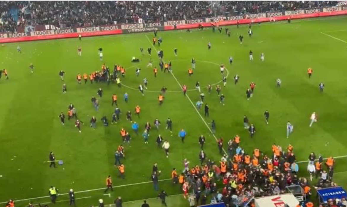 Tifozët e Trabzonspor, sulmuan lojtarët e Fenerbahces fizikisht, të cilët pas një përleshje për disa sekonda u larguan drejt tunelit. Edhe gjatë ndeshjes gjuajtën pa ndalur drejt lojtarëve të Fenerbahces, duke lënduar Dominik Livakoviç dhe trajnerin e mysafirëve, Ismail Kartal. Pamje me të vërtet të shëmtuara.