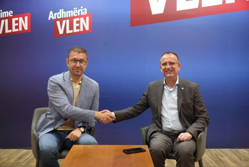 DPMNE në komunikatë për shtyp përdor termin “koalicijata na makedonskite albanci VLEN” (foto më poshtë).
