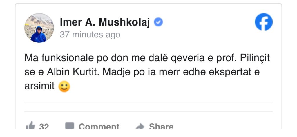 “Ma funksionale po don me dalë qeveria e prof. Pilinçit se e Albin Kurtit. Madje po ia merr edhe ekspertat e arsimit” – ka shkruar ai.
