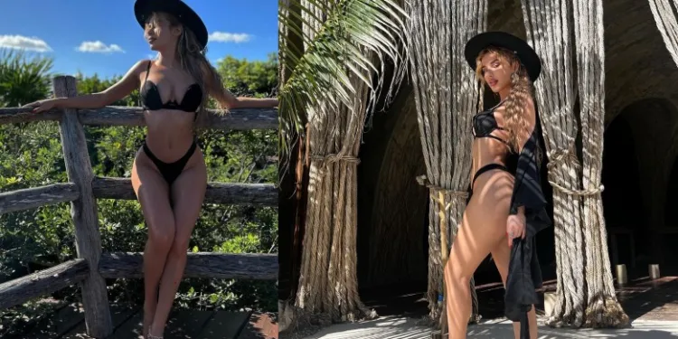 Ajo që merr vëmendje është linja e trupit në bikini e që po duket në top formë.