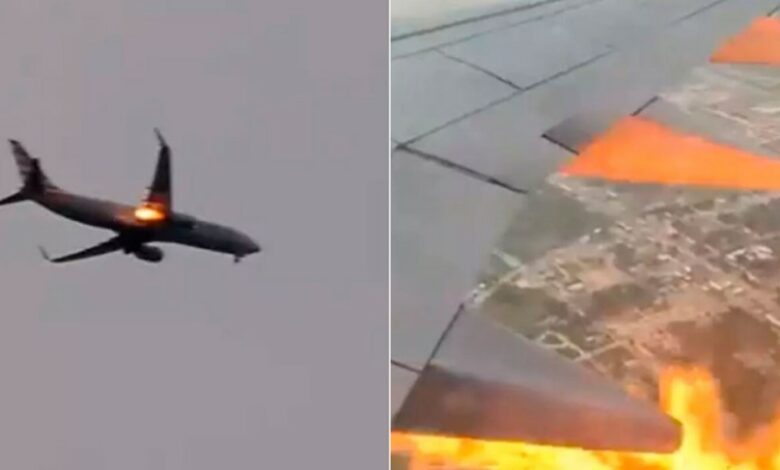 Avioni, një Boeing 737, po udhëtonte nga Hjustoni, Teksas për në Kankun, Meksikë, kur motori i tij shpërtheu në flakë pak pas ngritjes të martën (15 gusht). Sprova e tmerrshme u kap në kamera nga pasagjerët në bordin e avionit.