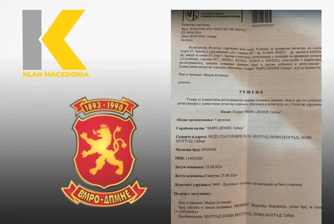 Sic thuhet në dokumentin zyrtar të Agjencisë për regjistra ekonomik në Serbi, Lëvizja VMRO DPMNE – Serbi është themeluar më 25 gusht 2024 derisa në Regjistër është shënuar më 18 shtator 2024.