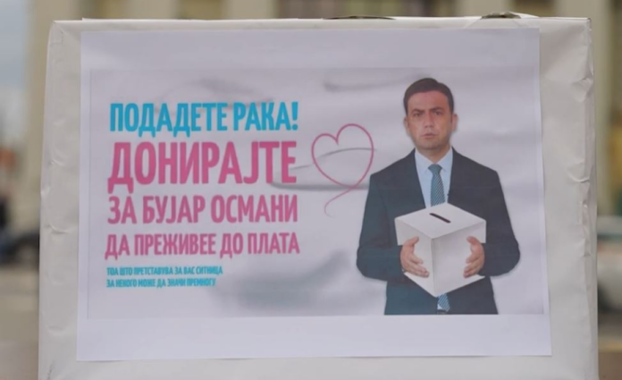 Nga VMRO-DPMNE-ja kanë vendosur kuti për donacione para Ministrisë së Punëve të Jashtme, ku me sarkazëm kërkojnë që të mblidhe mjete financiare për ministrin e Jashtëm, Bujar Osmani, përcjell TV21. Ky aksion i të rinjve në VMRO-DPMNE vjen pasi Osmani së fundmi deklaroi se nëse nuk e merr rrogën me rregull, detyrohet që të marrë borxh nga miqtë për të mbijetuar.