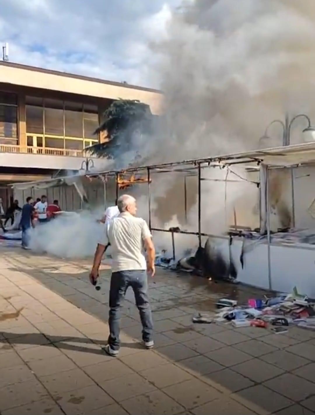 Nga pamjet shihet që aty janë djegur tendat e vendosura në hyrje të Pallatit, shumë libra dhe gjësende tjera ndërsa dëmet materiale janë të konsiderueshme.